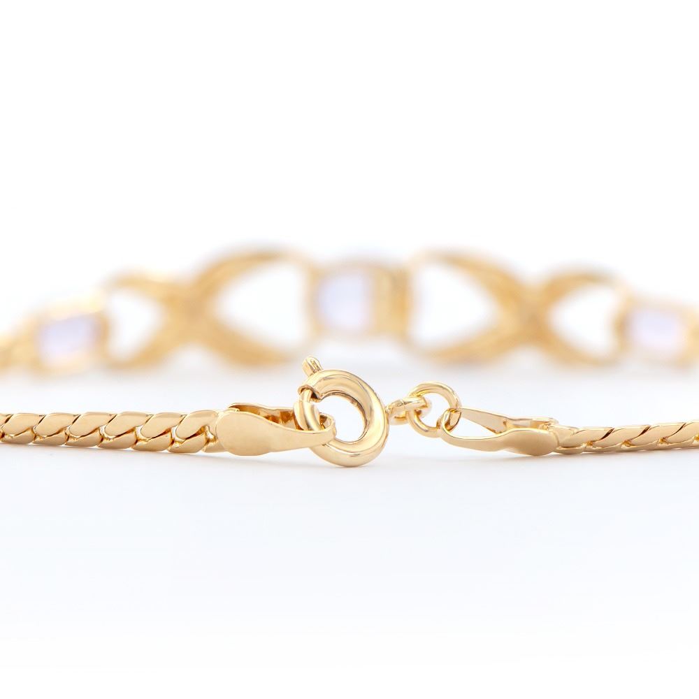 One Plated 18KT Yellow Gold 1.80ctw Amethyst and Diamond Bracelet. (3) Amethyst stones with a total weight of 1.80cts. (2) diamonds measuring 1.1mm. 4.85 grams of brass layered with 18K yellow gold. The length of this bracelet is 7 1/2 inches.