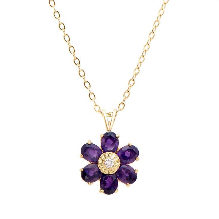 Plated 18KT Yellow Gold 1.81cts Amethyst and Diamond Necklace