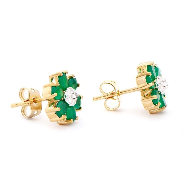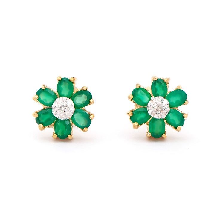 Plated 18KT Yellow Gold 1.82cts Green Agate and Diamond Earrings