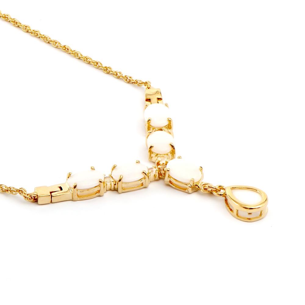 Plated 18KT Yellow Gold 1.95ctw Opal and White Topaz Pendant with Chain