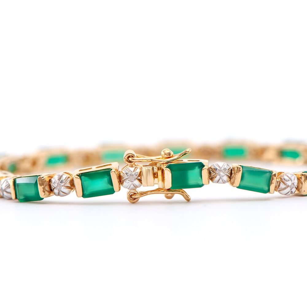 Plated 18KT Yellow Gold 10.00ctw Green Agate and Diamond Bracelet