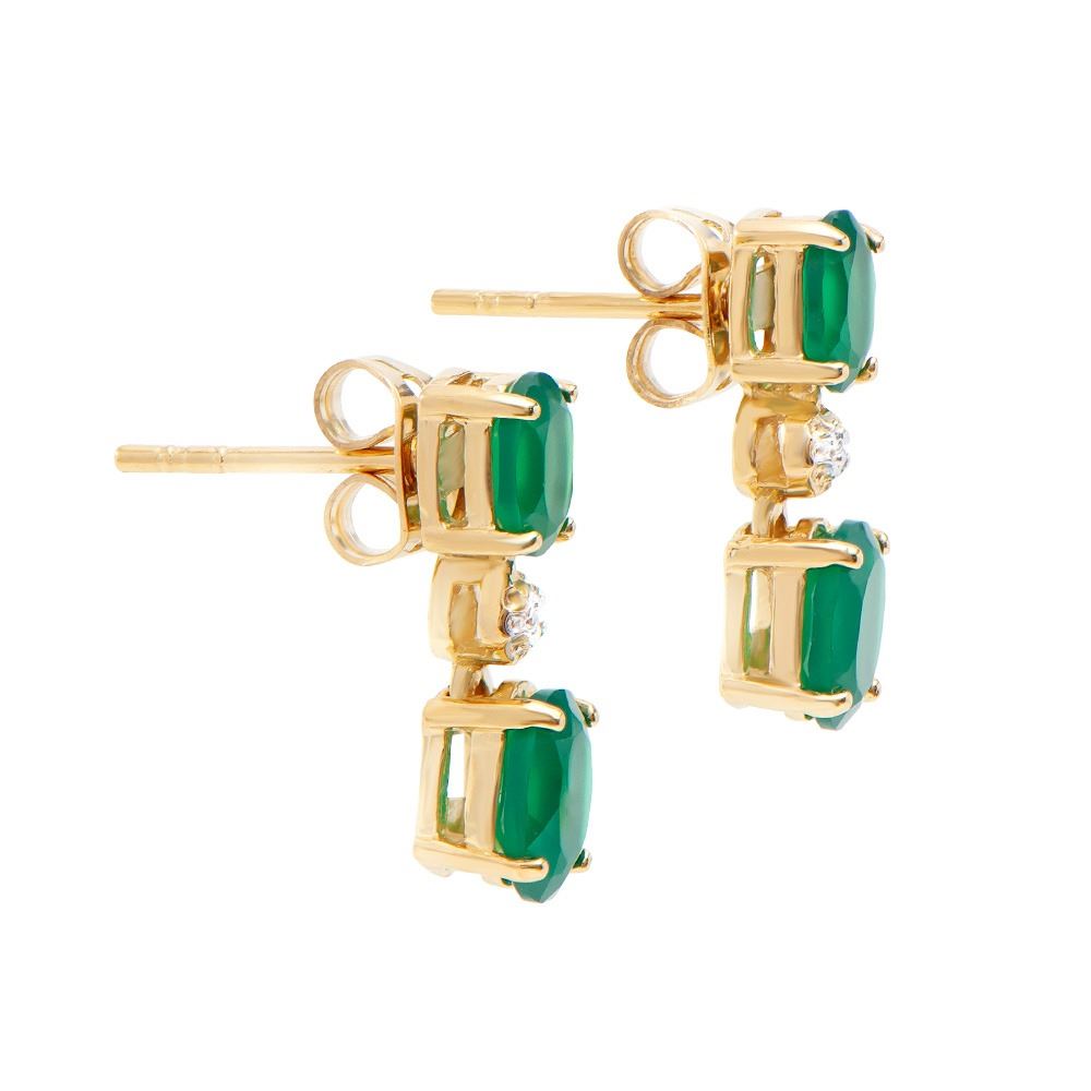 One pair of Plated 18KT Yellow Gold 2.00ctw Green Agate and Diamond Earrings. (4) Green Agate stones with a total weight of 2.00cts. Diamonds with a total weight of 0.015cts with a color of I-J and with a clarity of I3. 1.65 grams of brass layered with 18K yellow gold.