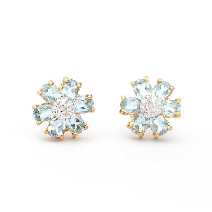 One pair of Plated 18KT Yellow Gold 2.02cts Blue Topaz and Diamonds Earrings. (12) Blue Topaz stones with a total weight of 2cts. (2) diamonds with a total of 0.02cts with a color of H-I and clarity of I-3. Total weight of these earrings is 3.15 grams.