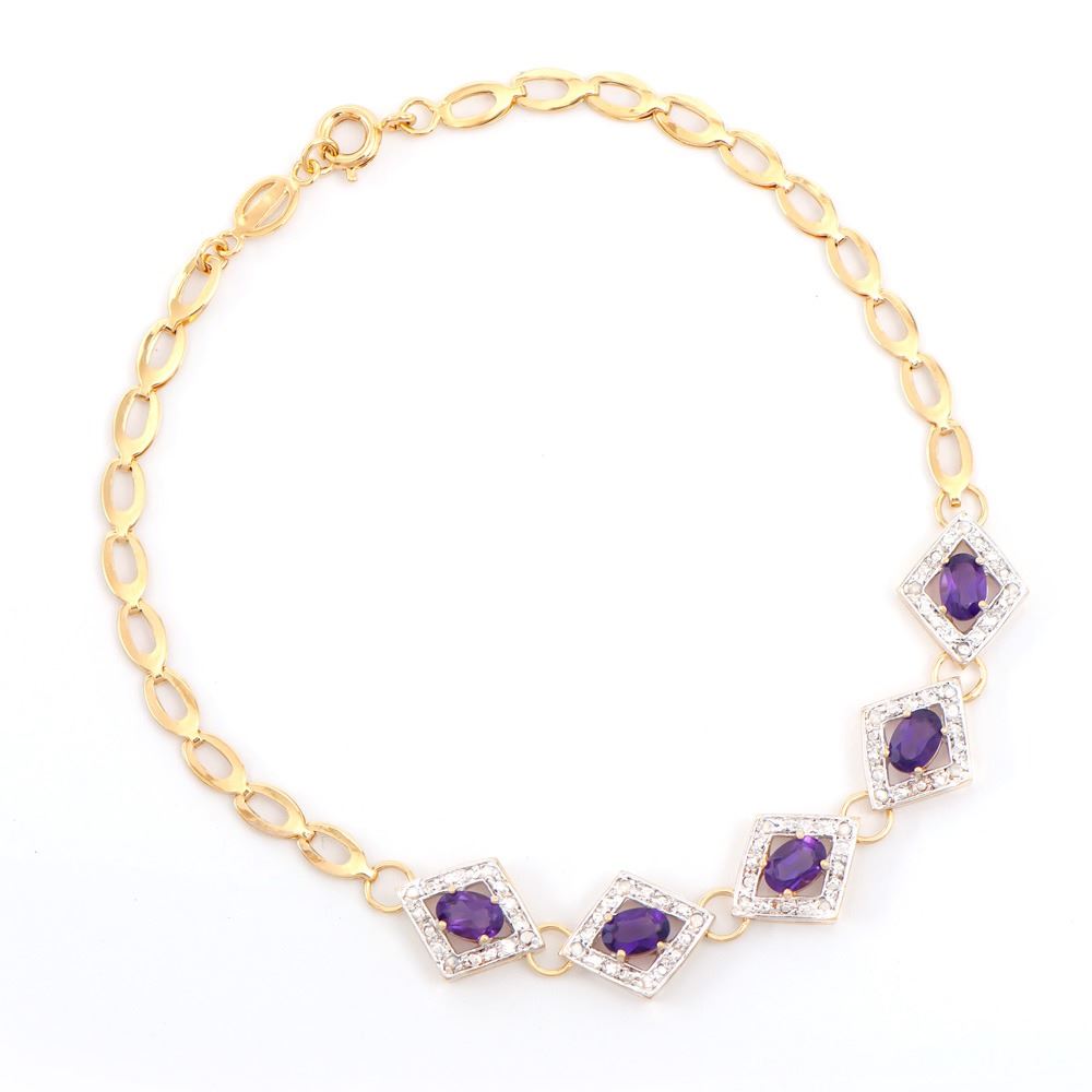 Plated 18KT Yellow Gold 2.05ctw Amethyst and Diamond Bracelet