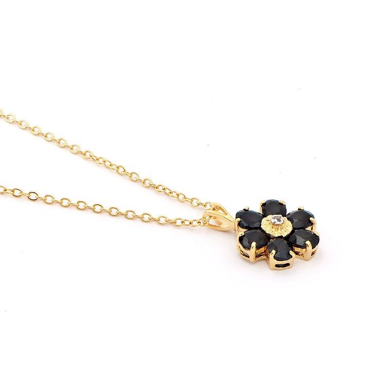 Plated 18KT Yellow Gold 2.52ctw Black Sapphire and Diamond Pendant with Chain