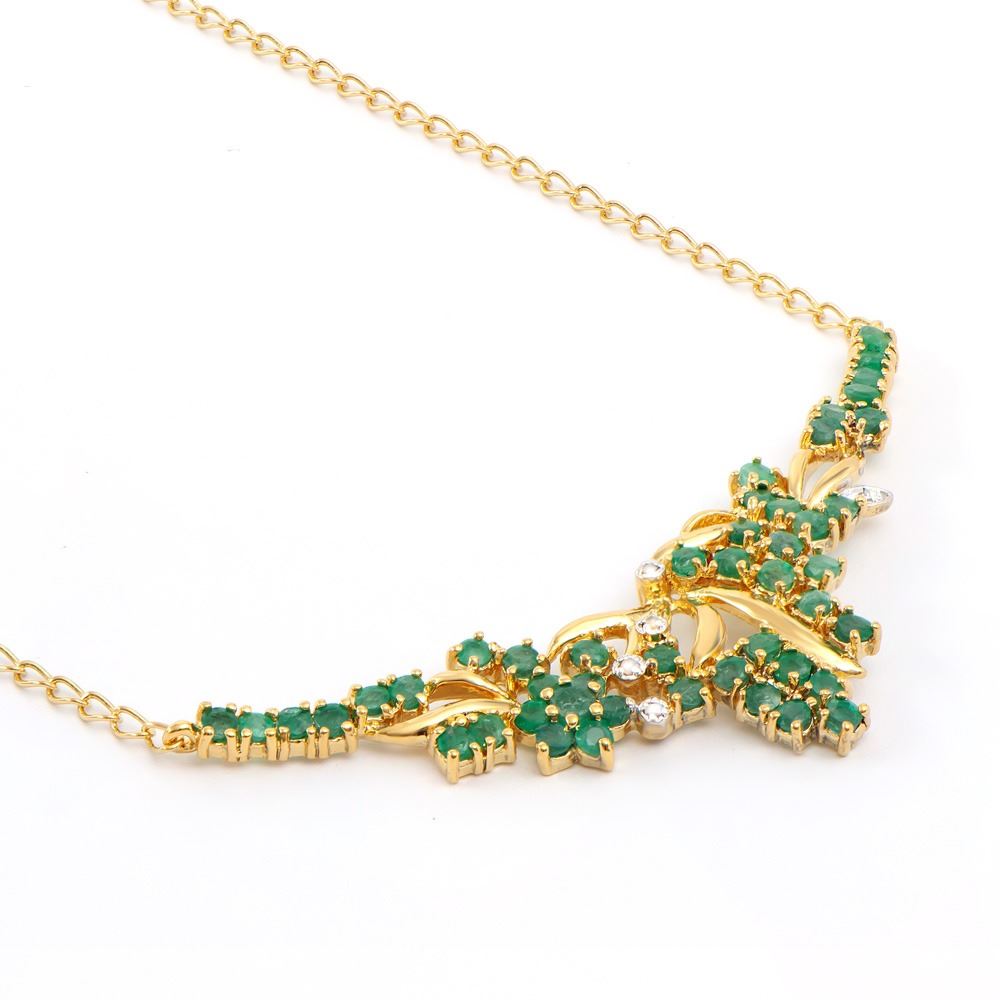 One Plated 18KT Yellow Gold 2.55ctw Emerald and Diamond Pendant with Chain. (47) Emeralds with a total weight of 2.55cts. Diamonds with a total weight of 0.04cts with a color of I-J and clarity of I-3.Total weight of 6.25 grams of brass layered with 18K yellow gold.