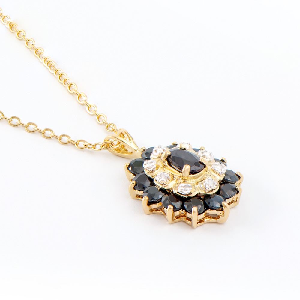 Plated 18KT Yellow Gold 2.60ctw Black Sapphire and Diamond Pendant with Chain