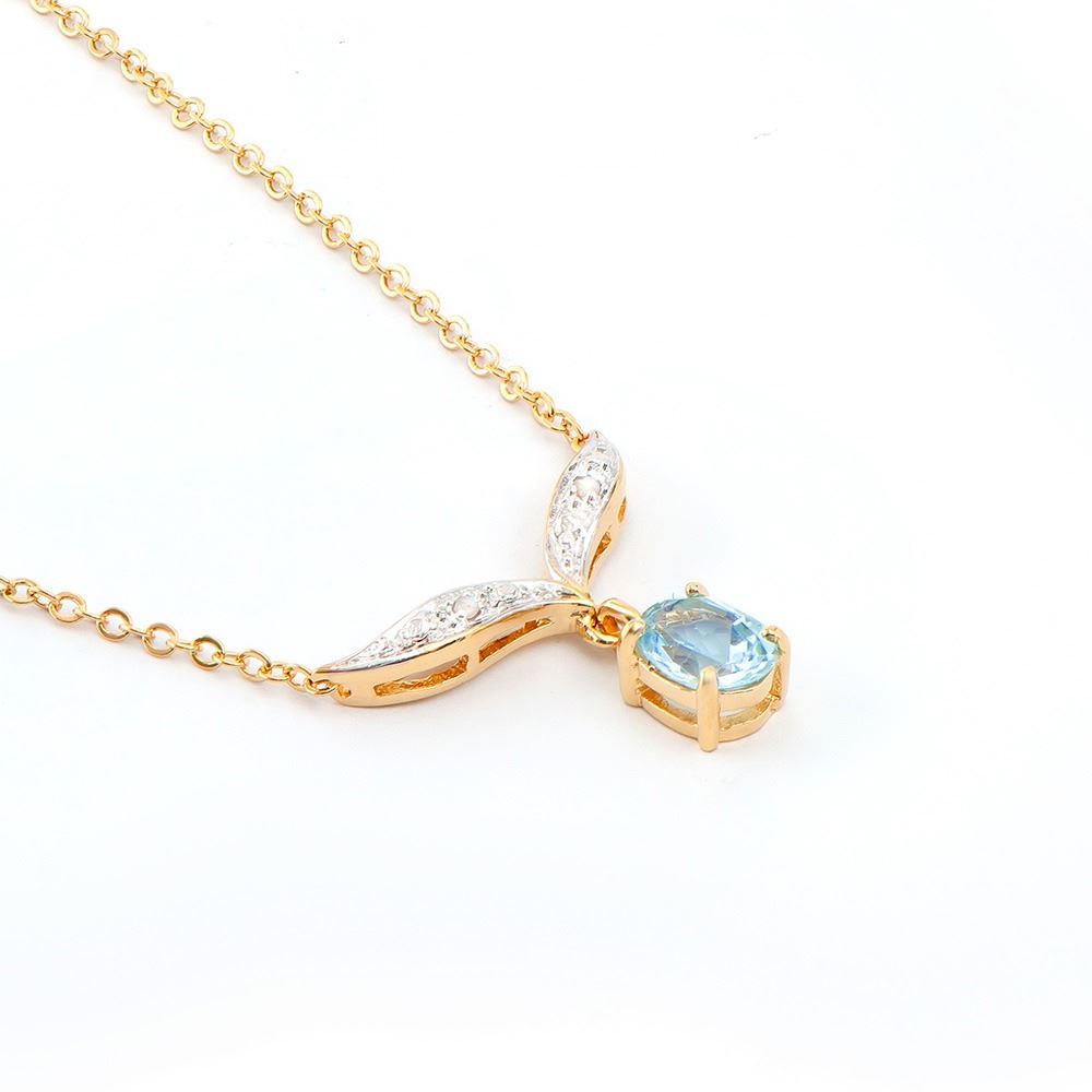 Plated 18KT Yellow Gold 2.65ct Blue Topaz and Diamond Pendant with Chain