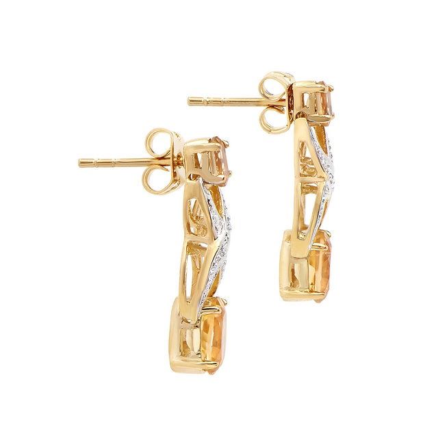 One pair of Plated 18KT Yellow Gold 2.66cts Citrine and Diamond Earrings. (4) Orange Citrine stones with a total weight of 2.64cts. (2) diamonds with a total of 0.02cts with a color of H-I and clarity of I-3. Total weight of these earrings is 3.66 grams.