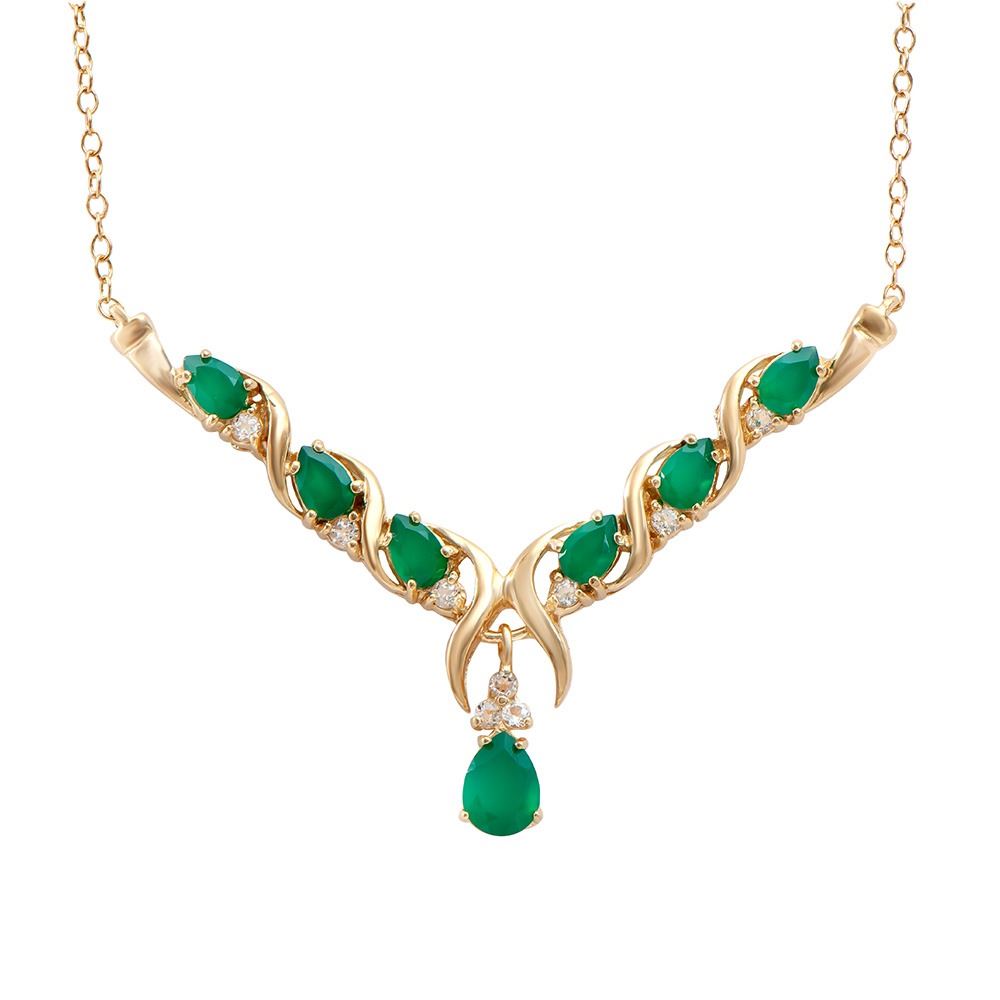Plated 18KT Yellow Gold 2.90ctw Green Agate and White Topaz Pendant with Chain