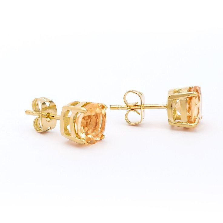 One pair of Plated 18KT Yellow Gold 3.15cts Citrine Earrings. (2) Orange Citrine stones with a total weight of 3.15cts. Total weight of these earrings is 2.13 grams.