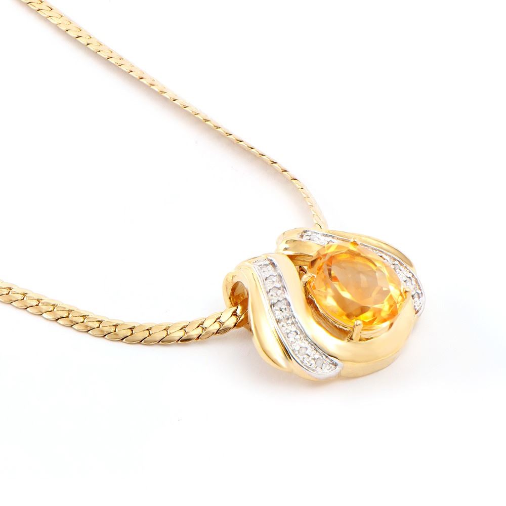 Plated 18KT Yellow Gold 4.05ct Citrine and Diamond Pendant with Chain