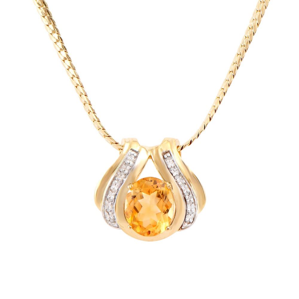 Plated 18KT Yellow Gold 4.05ct Citrine and Diamond Pendant with Chain