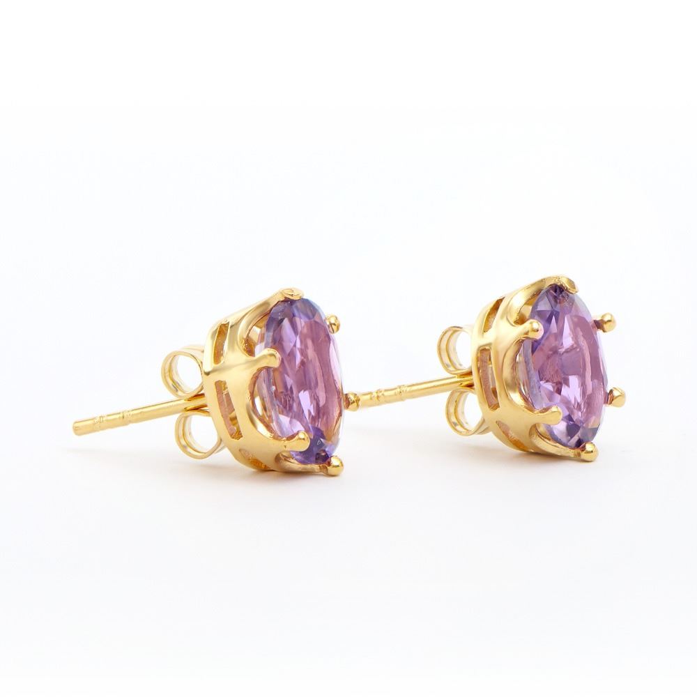 One pair of Plated 18KT Yellow Gold 4.25ctw Amethyst and Diamond Earrings. (2) Amethyst stones with a total weight of 4.25cts. 1.85 grams of brass layered with 18K yellow gold.