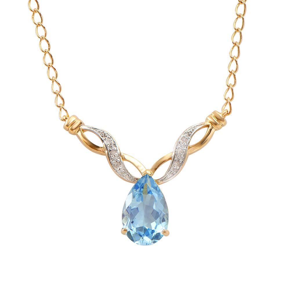 Plated 18KT Yellow Gold 4.75ctw Blue Topaz and Diamond Pendant with Chain