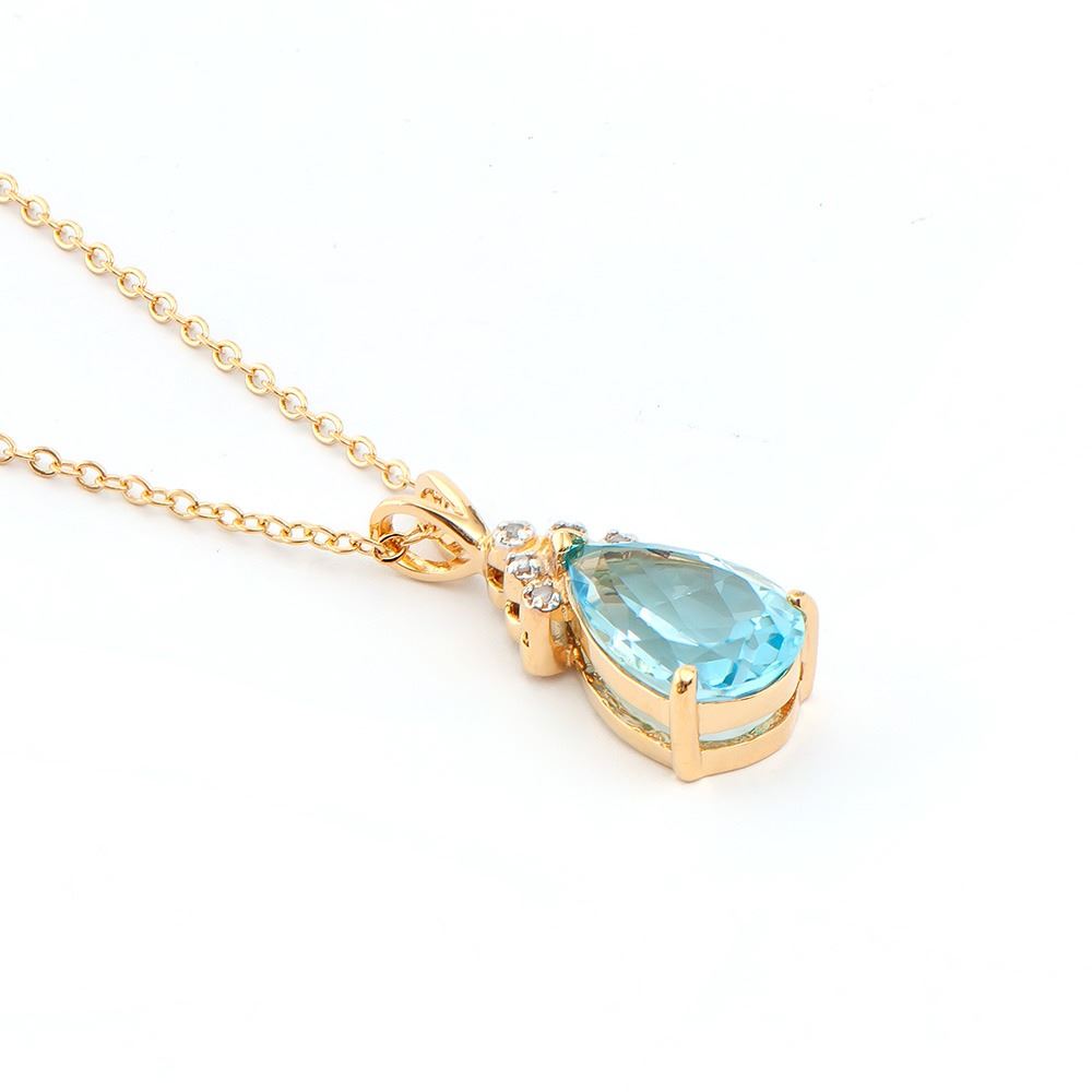 Plated 18KT Yellow Gold 5.05ctw Blue Topaz and Diamond Pendant with Chain