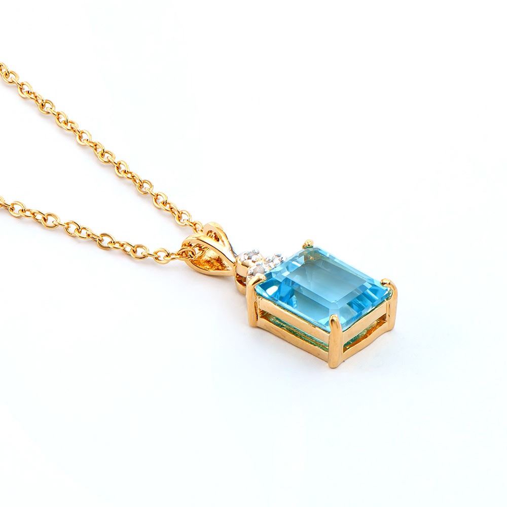 Plated 18KT Yellow Gold 5.10ctw Blue Topaz and Diamond Pendant with Chain
