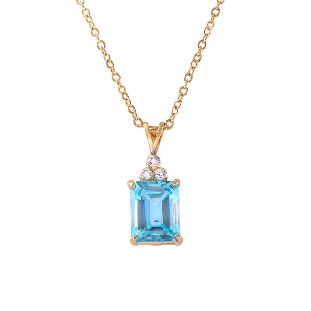 Plated 18KT Yellow Gold 5.10ctw Blue Topaz and Diamond Pendant with Chain