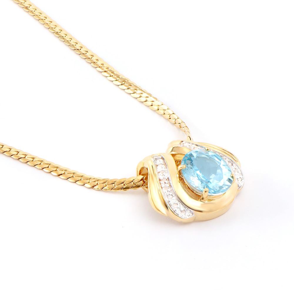 Plated 18KT Yellow Gold 6.00ct Blue Topaz and Diamond Pendant with Chain