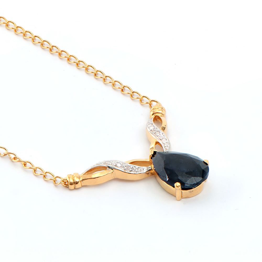 Plated 18KT Yellow Gold 6.05ct Black Sapphire and Diamond Pendant with Chain