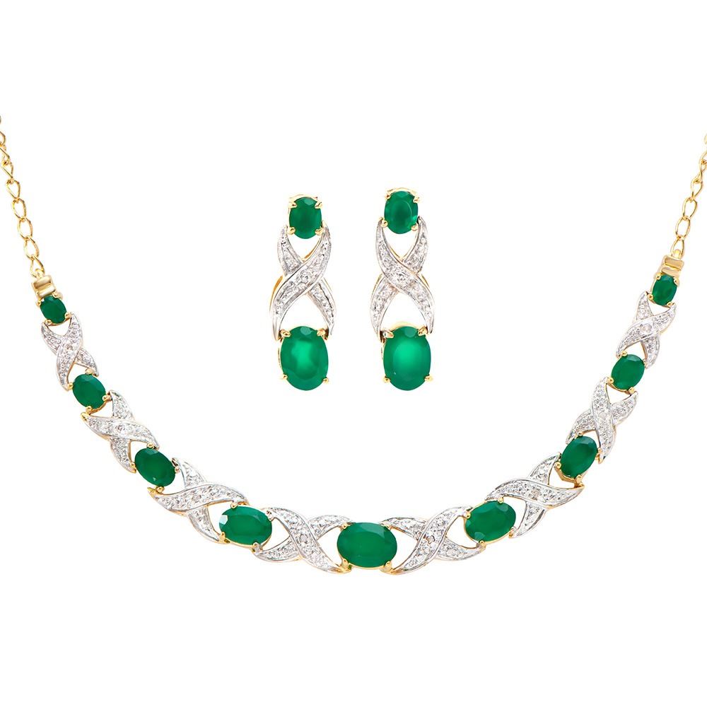 Plated 18KT Yellow Gold 6.10ctw Green Agate and Diamond Pendant with Chain and Earrings