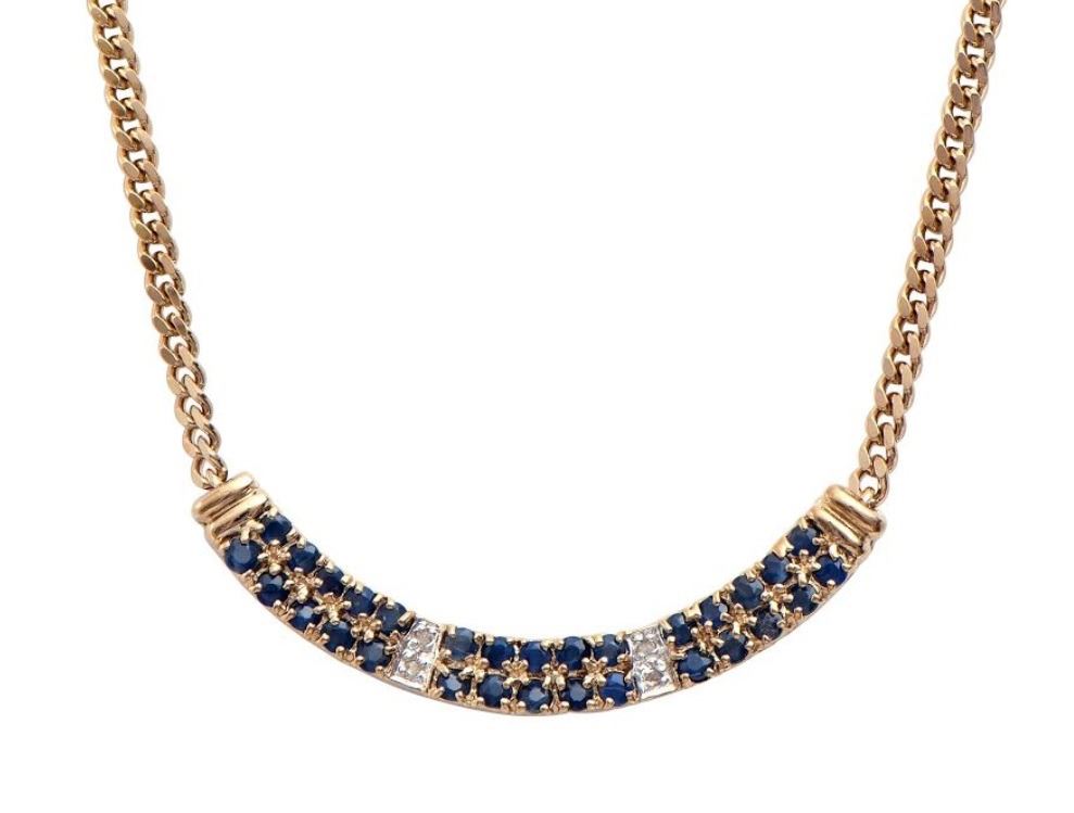 One Plated 18KT Yellow Gold 6.18ctw Black Sapphire and Diamond Pendant with Chain. (30) Black Sapphires with a total weight of 6.18cts, each measuring 2.1mm. 4 pieces of 1.0 mm round diamonds. 6.58 grams of brass layered with 18K yellow gold.