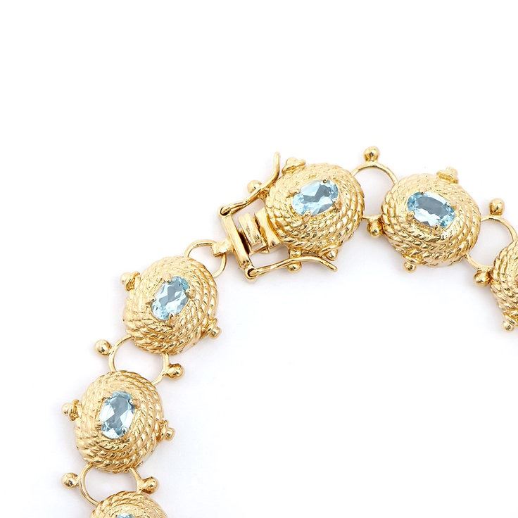 One Plated 18KT Yellow Gold 6.25cts Blue Topaz Bracelet 8.1 in. (12) Blue Topaz stones with a total weight of 6.25cts. Total weight of this bracelet is 21.22 grams.