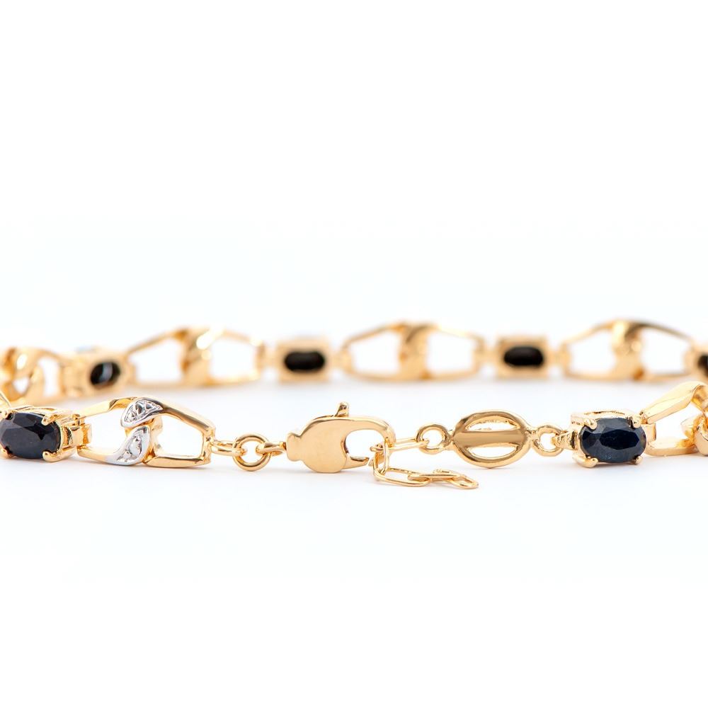 Plated 18KT Yellow Gold 6.50ctw Black Sapphire and Diamond Bracelet