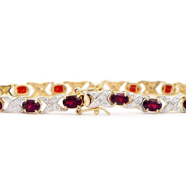 Plated 18KT Yellow Gold 7.20ctw Garnet and Diamond Bracelet