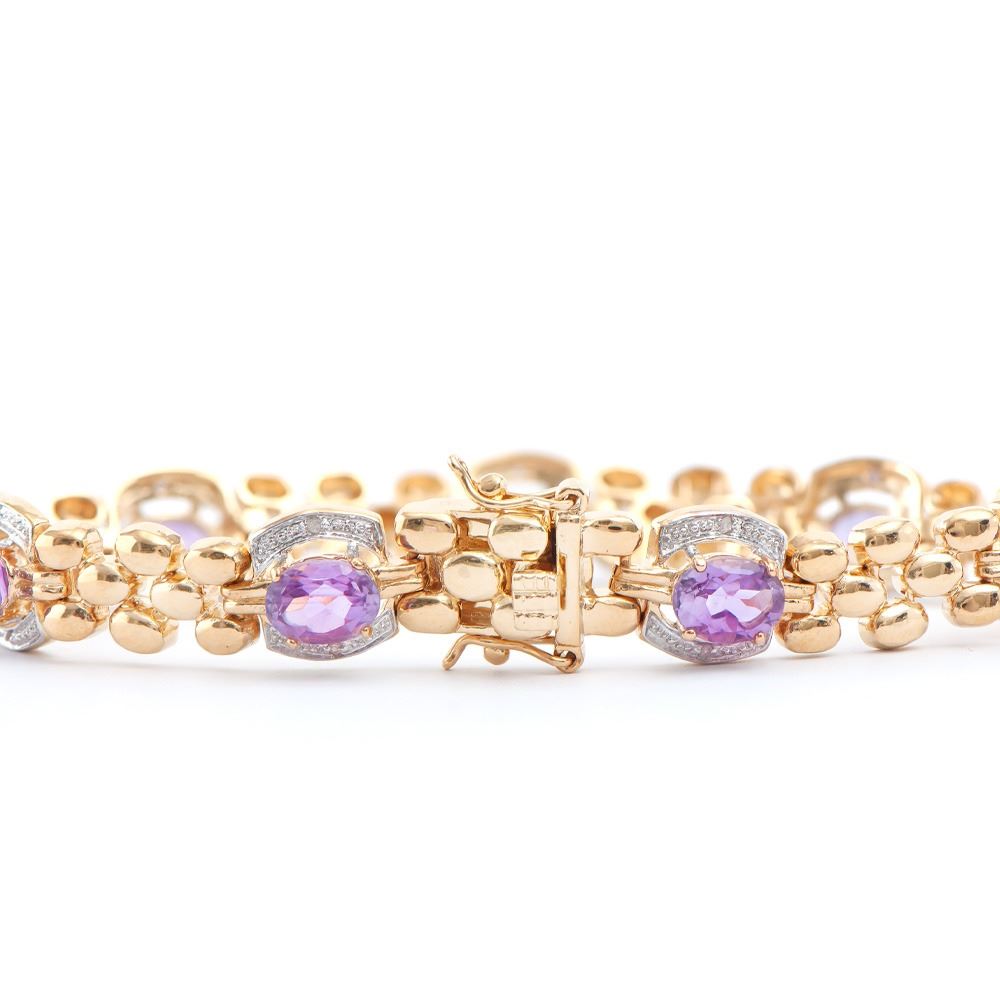 Plated 18KT Yellow Gold 7.50ctw Amethyst and Diamond Bracelet