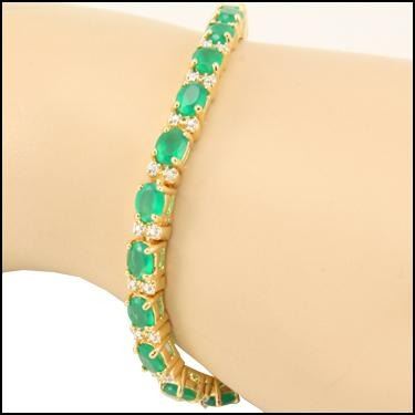 Plated 18KT Yellow Gold 8.25ctw Green Agate and Diamond Bracelet