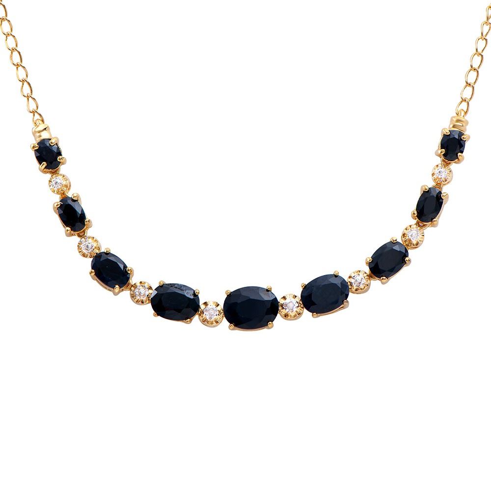 Plated 18KT Yellow Gold 8.90ctw Black Sapphire and Diamond Pendant with Chain