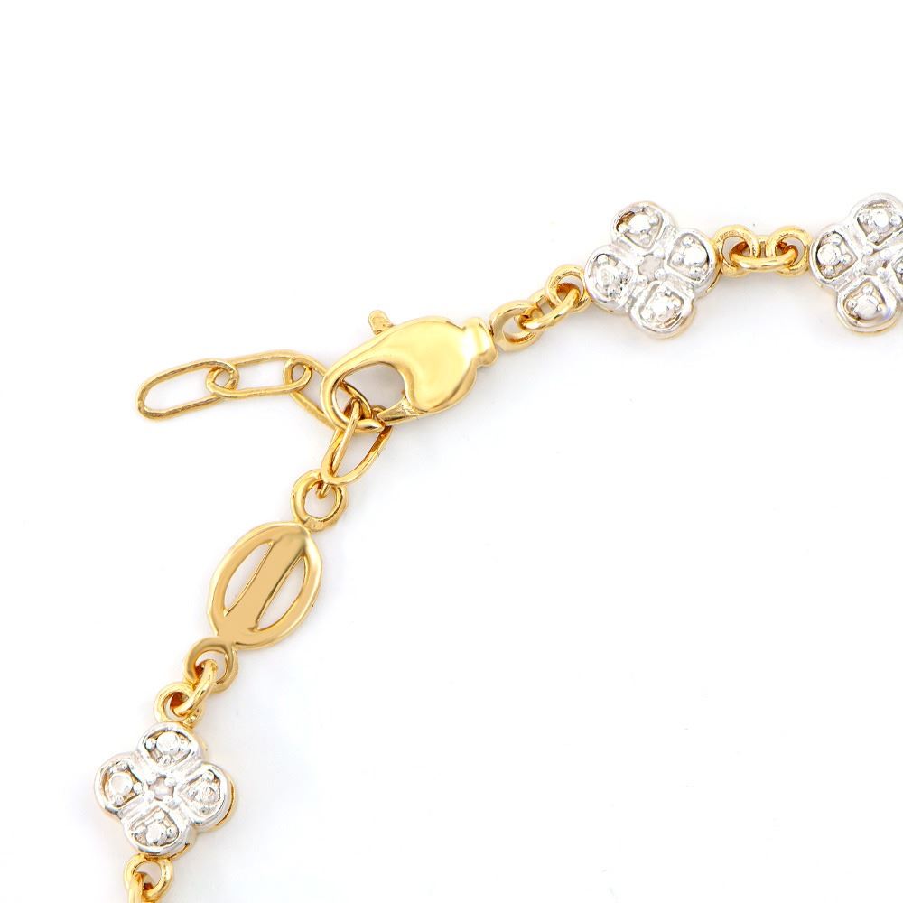 One Plated 18KT Yellow Gold Diamond Bracelet. Diamonds with a total weight of 0.11cts with a color of I-J and with a clarity of I3. Total weight of this bracelet is 6.85 grams of brass layered with 18K yellow gold. The length of this bracelet is 7 1/2 inches.