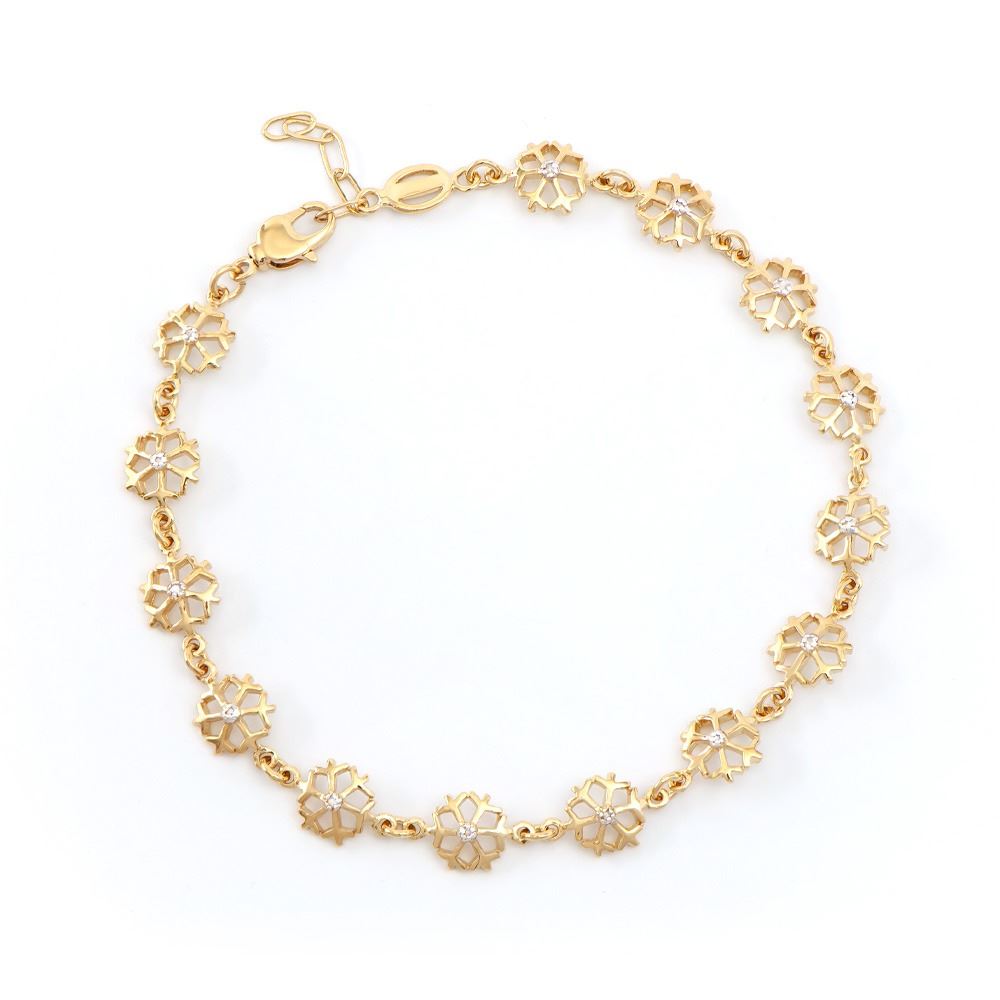 One Plated 18KT Yellow Gold Diamond Bracelet. Diamonds with a total weight of 0.11cts with a color of I-J and with a clarity of I3. Total weight of this bracelet is 5.05 grams of brass layered with 18K yellow gold. The length of this bracelet is 7 1/2 inches.
