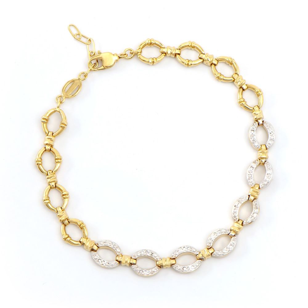 One Plated 18KT Yellow Gold Diamond Bracelet. Diamonds with a total weight of 0.11cts with a color of I-J and with a clarity of I3. Total weight of this bracelet is 9.05 grams of brass layered with 18K yellow gold. The length of this bracelet is 7 1/2 inches.
