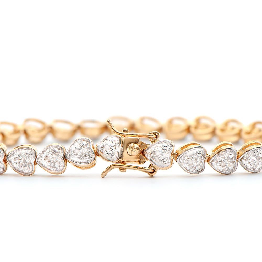 One Plated 18KT Yellow Gold Diamond Bracelet. Diamonds with a total weight of 0.24cts with a color of I-J and with a clarity of I3. Total weight of this bracelet is 9.75 grams of brass layered with 18K yellow gold. The length of this bracelet is 7 1/2 inches.