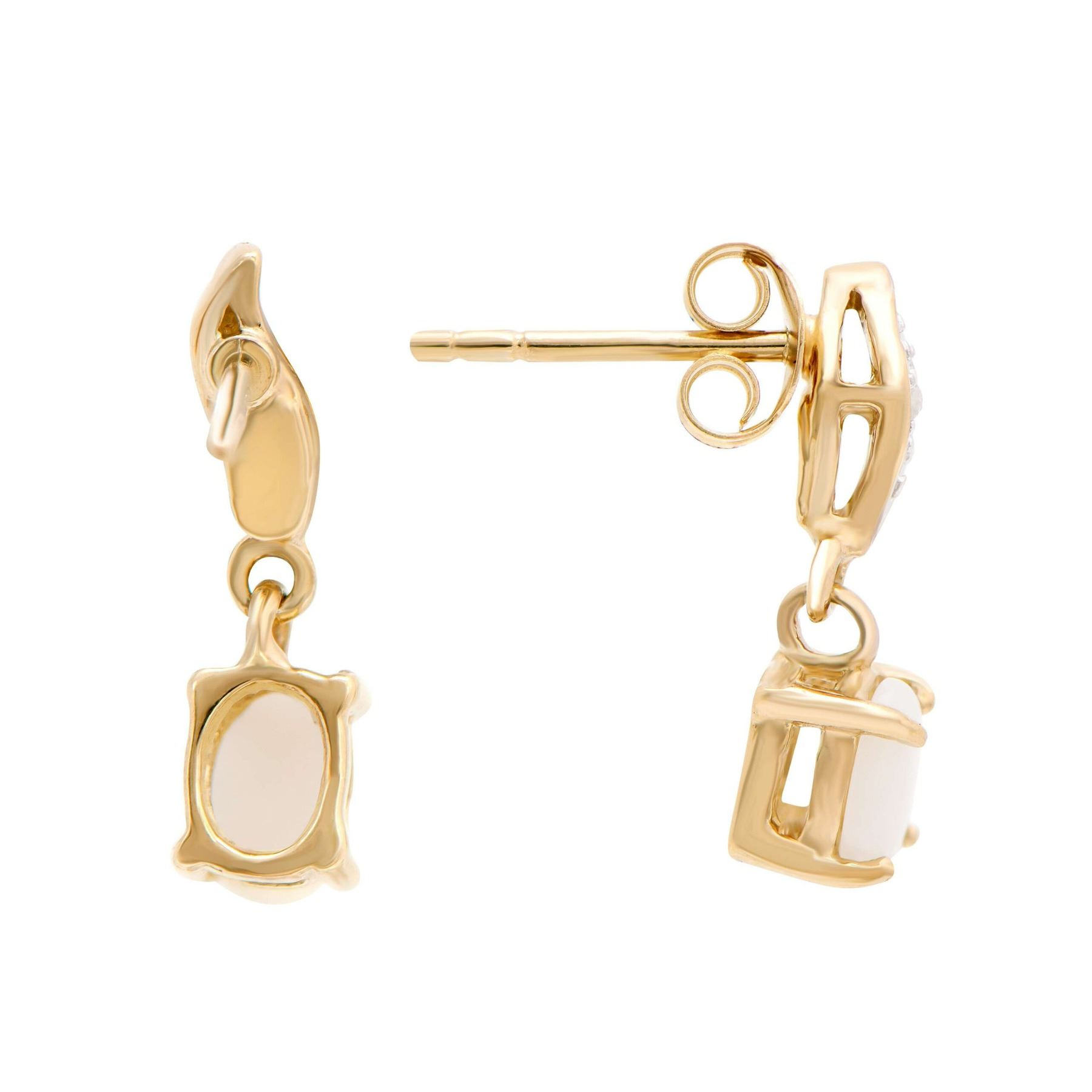 (2) Opals with a total weight of 0.51cts. (2) round Diamonds with a total weight of 0.02cts with a color of H-I and clarity of i3. Total weight of these earrings are 1.65 grams.