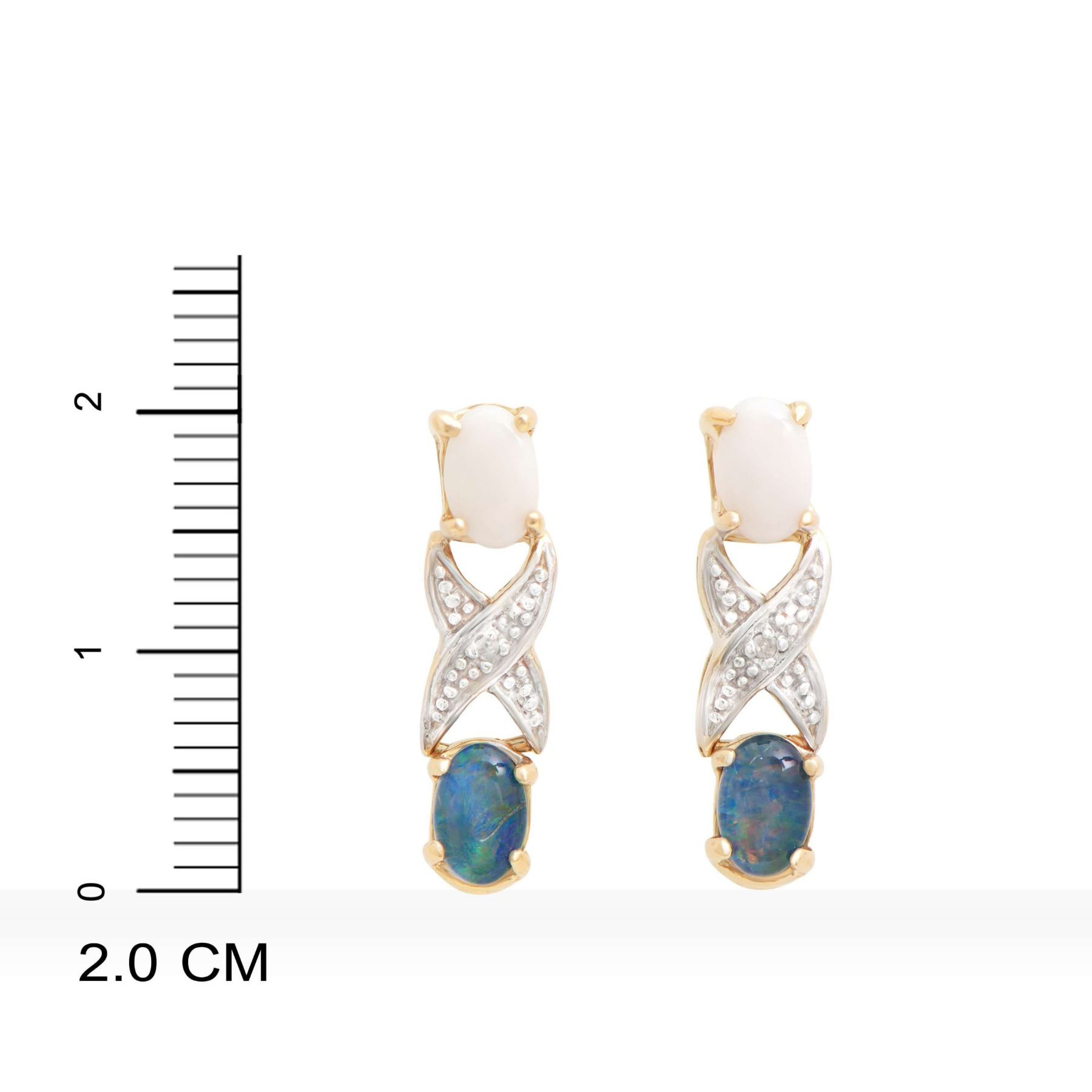 (2) round white Opals with a total weight of 0.51cts.(2) round mystic Opals with a total weight of 0.51cts. (2) round Diamonds with a total weight of 0.02cts with a color of H-I and clarity of i3. Total weight of these earrings are 2.45 grams.