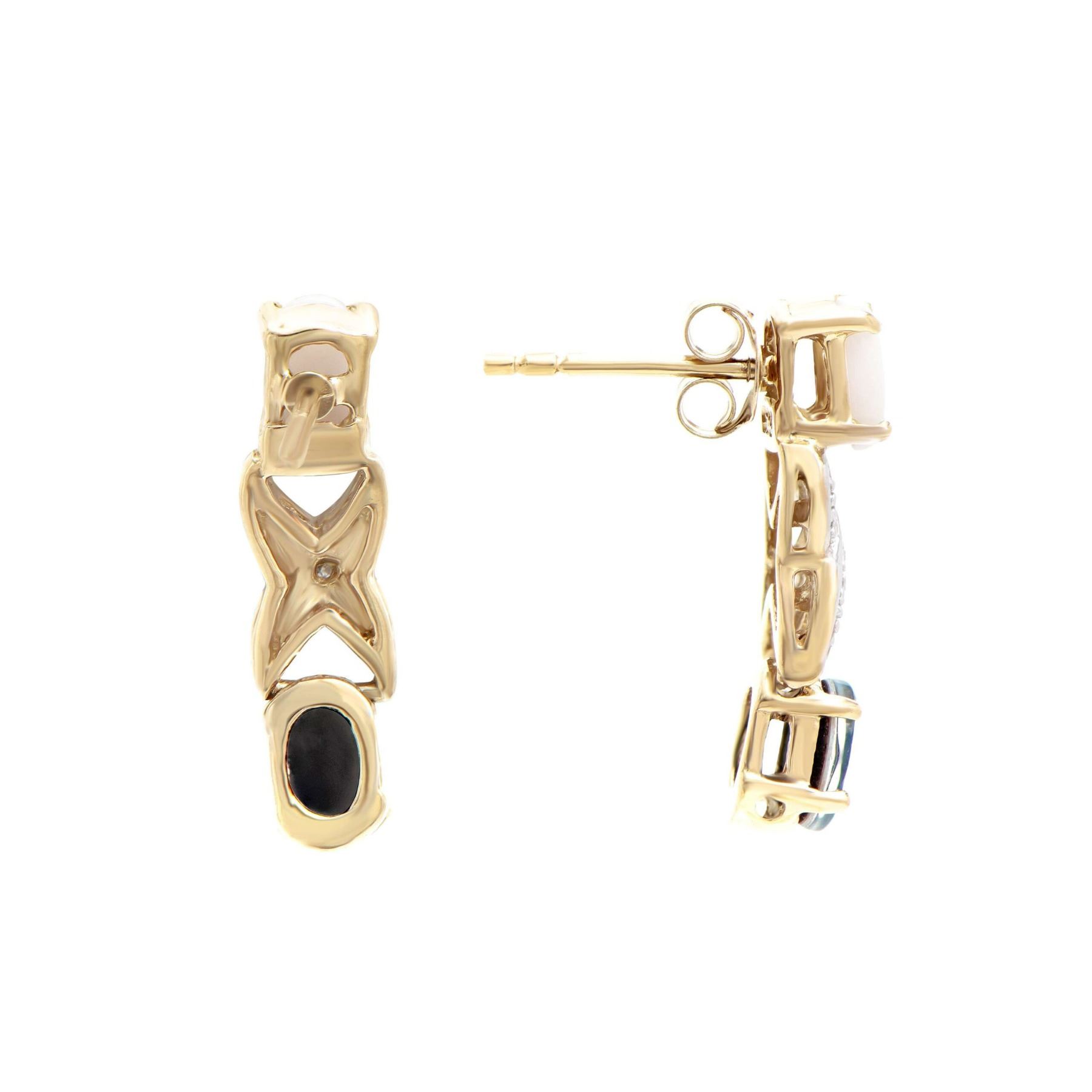 (2) round white Opals with a total weight of 0.51cts.(2) round mystic Opals with a total weight of 0.51cts. (2) round Diamonds with a total weight of 0.02cts with a color of H-I and clarity of i3. Total weight of these earrings are 2.45 grams.