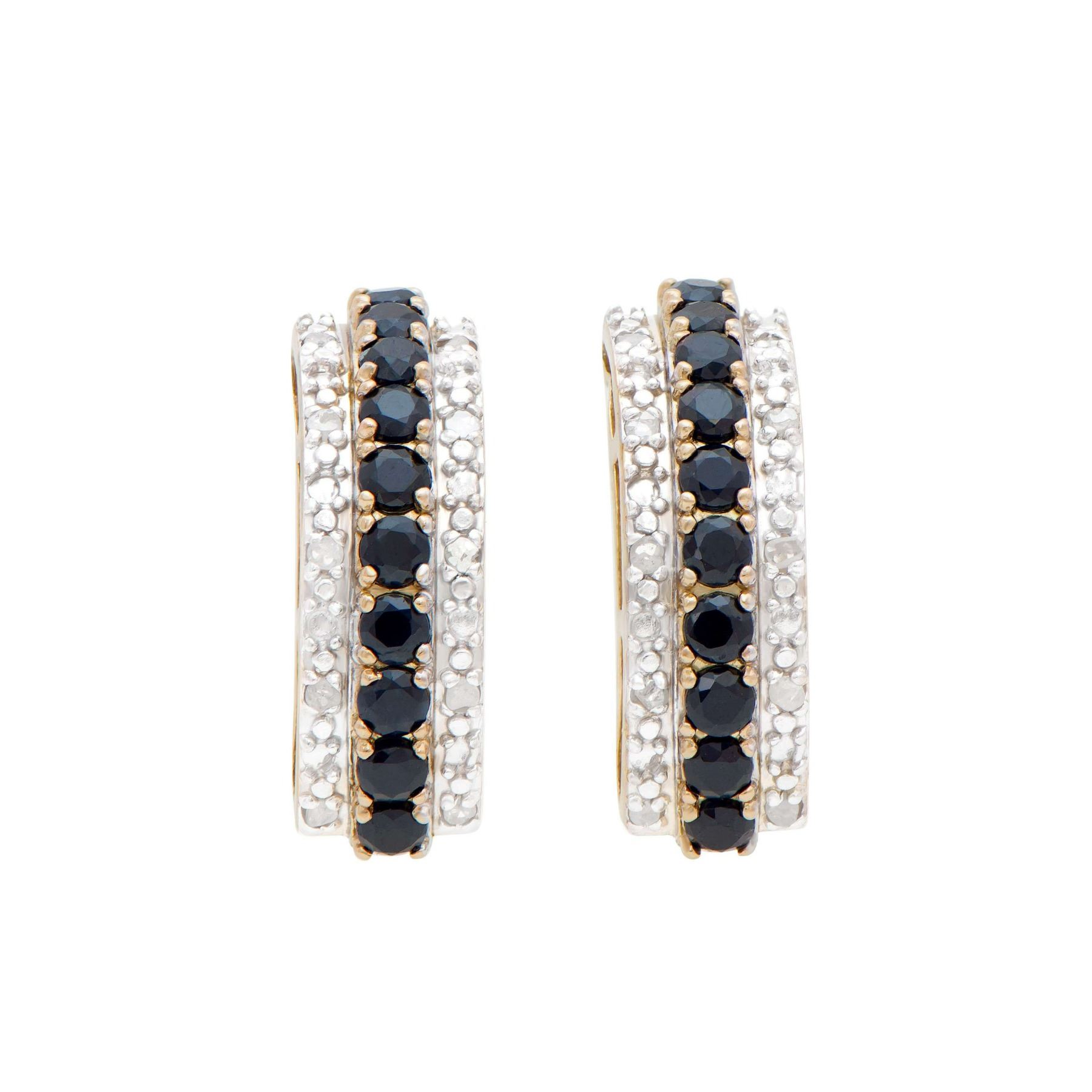 Plated 18KT Yellow Gold and Sterling Silver 2.02ctw Sapphire and Diamond Earrings