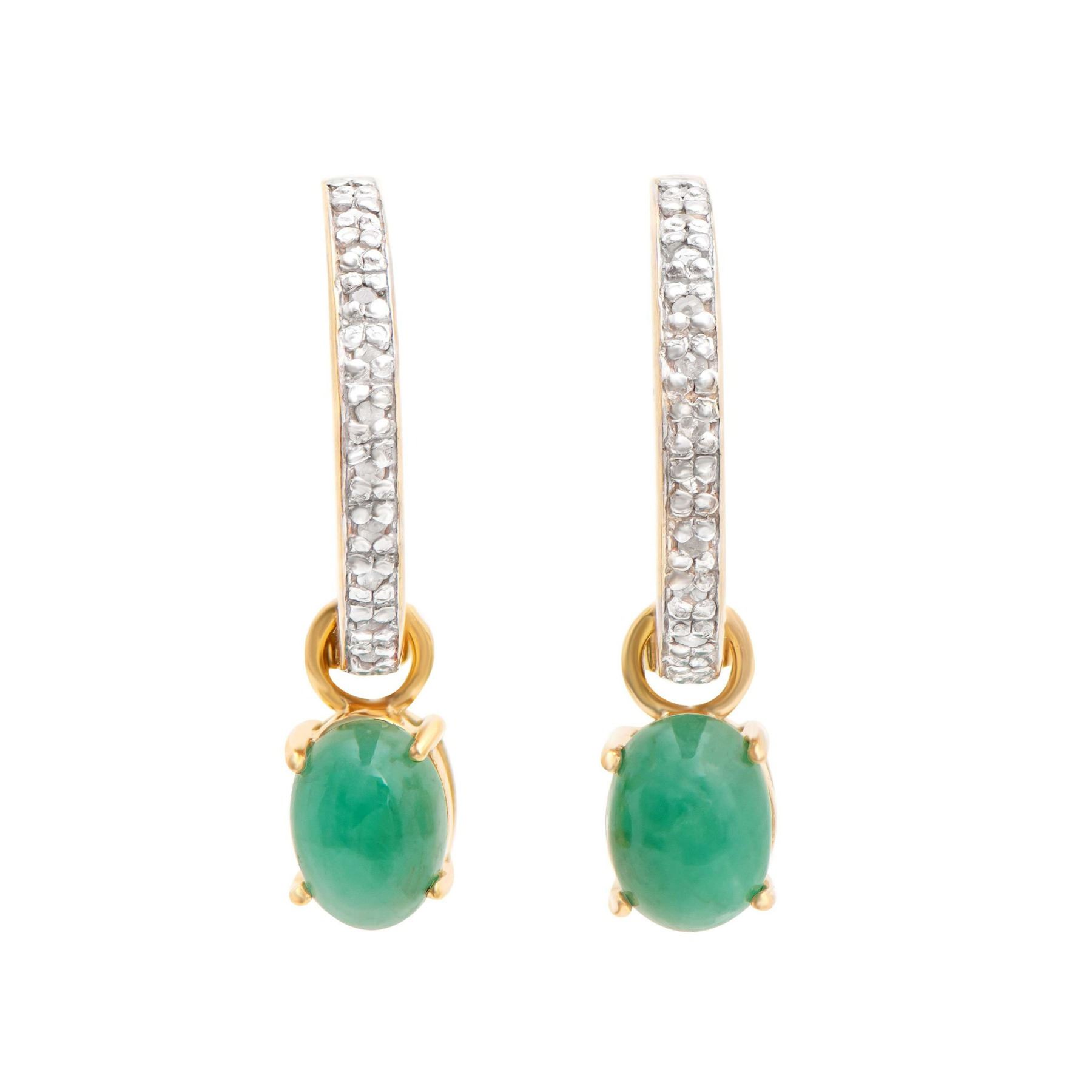 Plated 18KT Yellow Gold and Sterling Silver 2.35ctw Emerald and Diamond Earrings