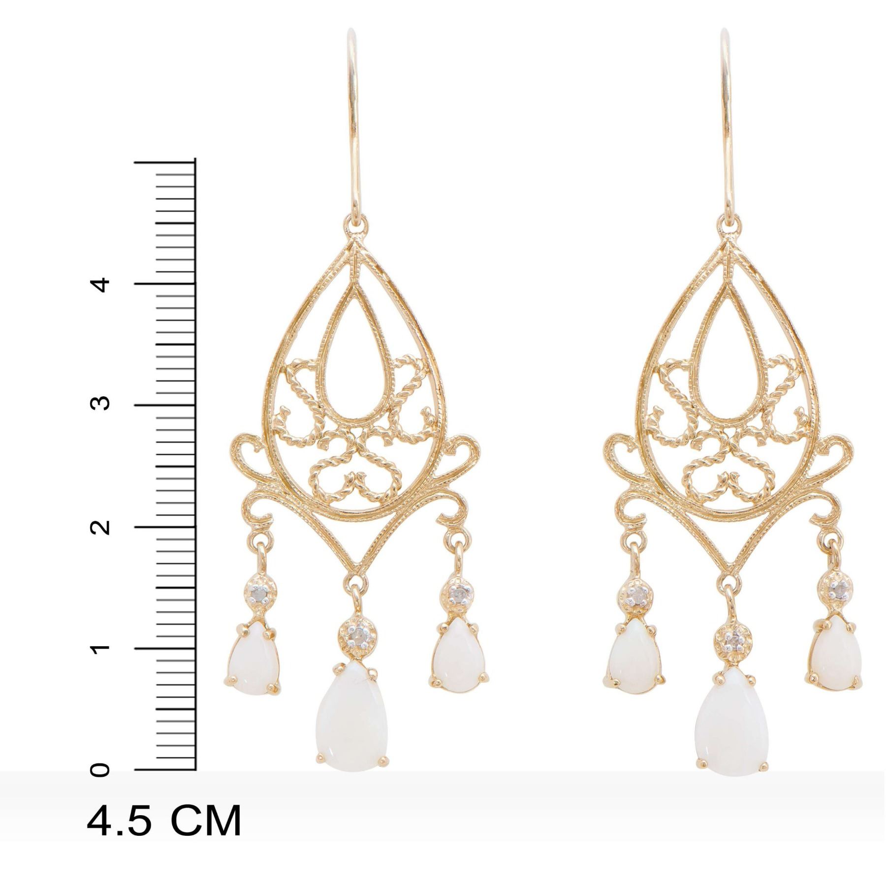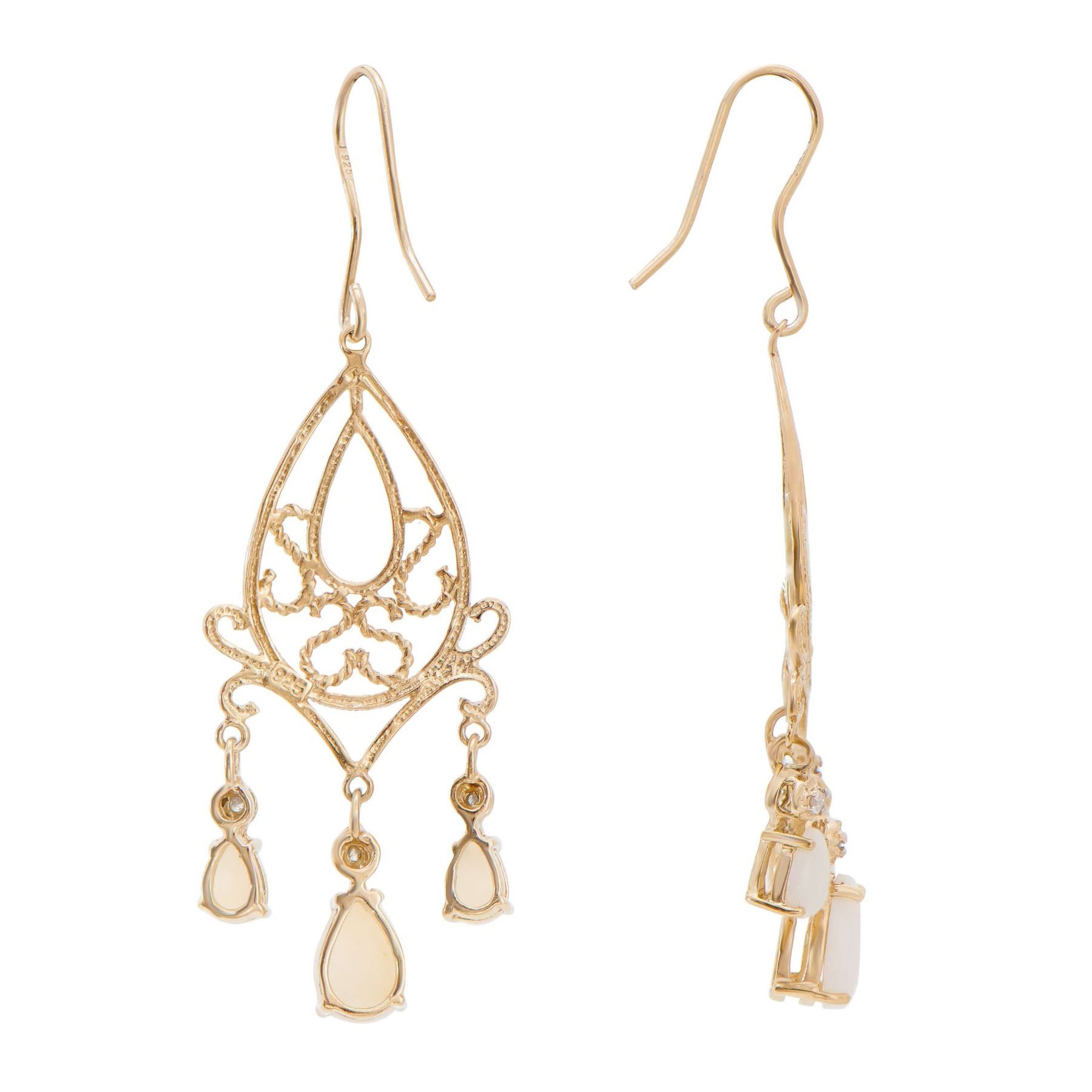 (2) Pear shaped Opals with a total weight of 1.55cts. (4) Pear shaped Opals with a total weight of 0.92cts. (6) round Diamonds with a total weight of 0.06cts with a color of H-I and clarity of i3. Total weight of these earrings are 5.66 grams.