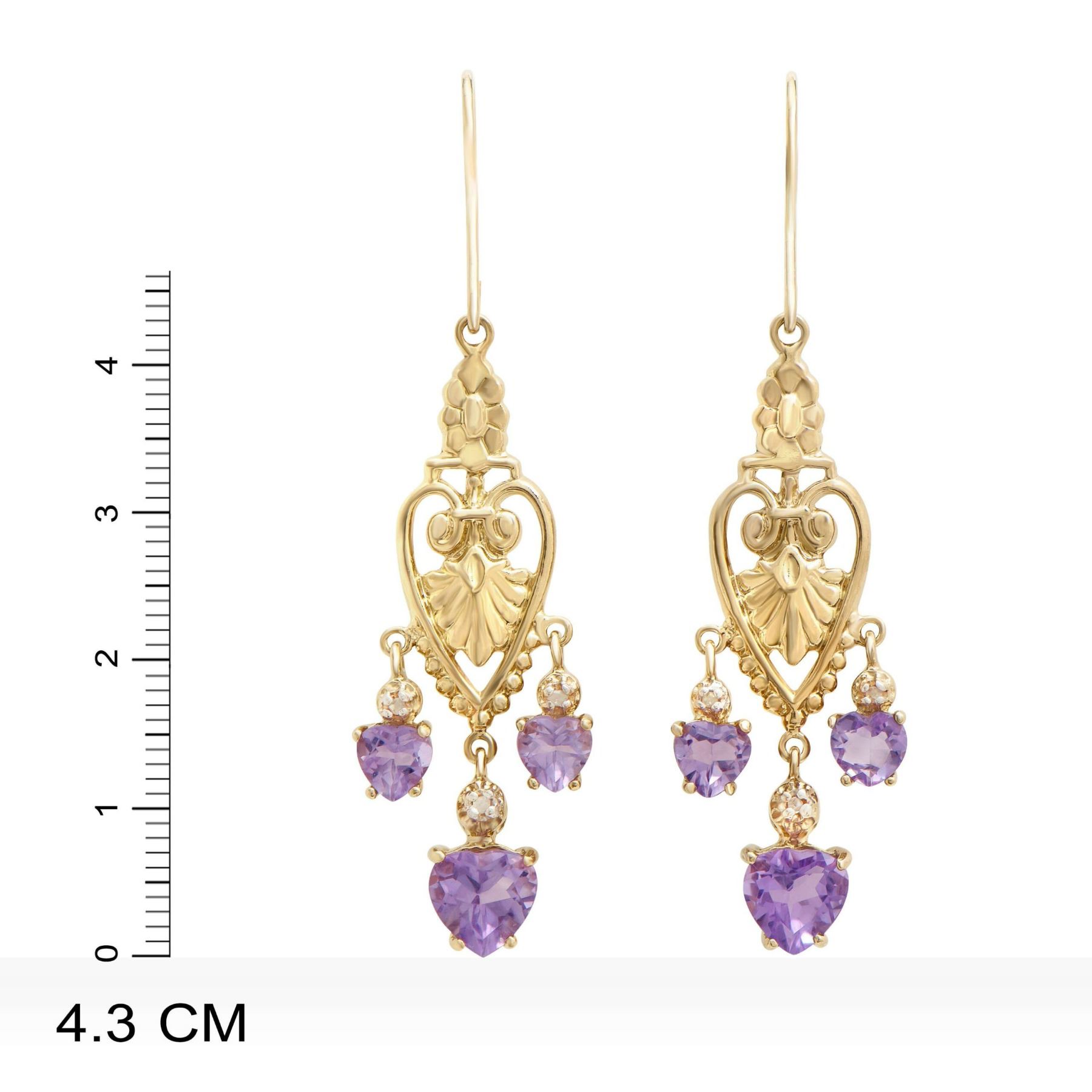 (2) Amethyst stones with a total weight of 1.75cts. (4) Amethyst stones with a total weight of 0.85cts. (6) round Diamonds with a total weight of 0.05cts with a color of H-I and clarity of i3. Total weight of these earrings are 6.10 grams.