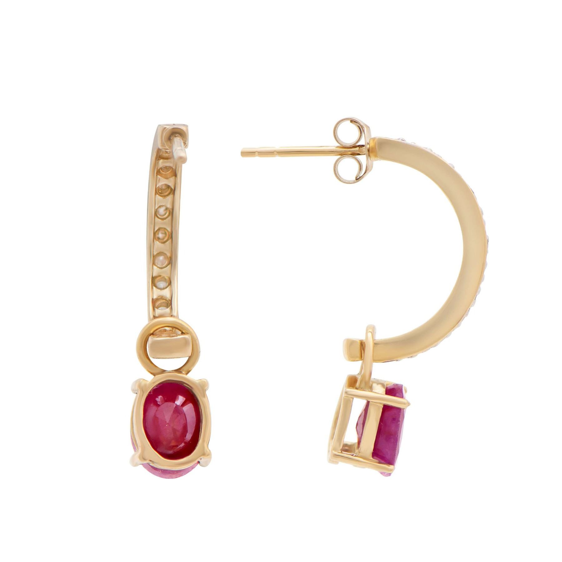 (2) Rubies with a total weight of 3.25cts. (24) round Diamonds with a total weight of 0.18cts with a color of H-I and clarity of i3. Total weight of these earrings are 4.0 grams.