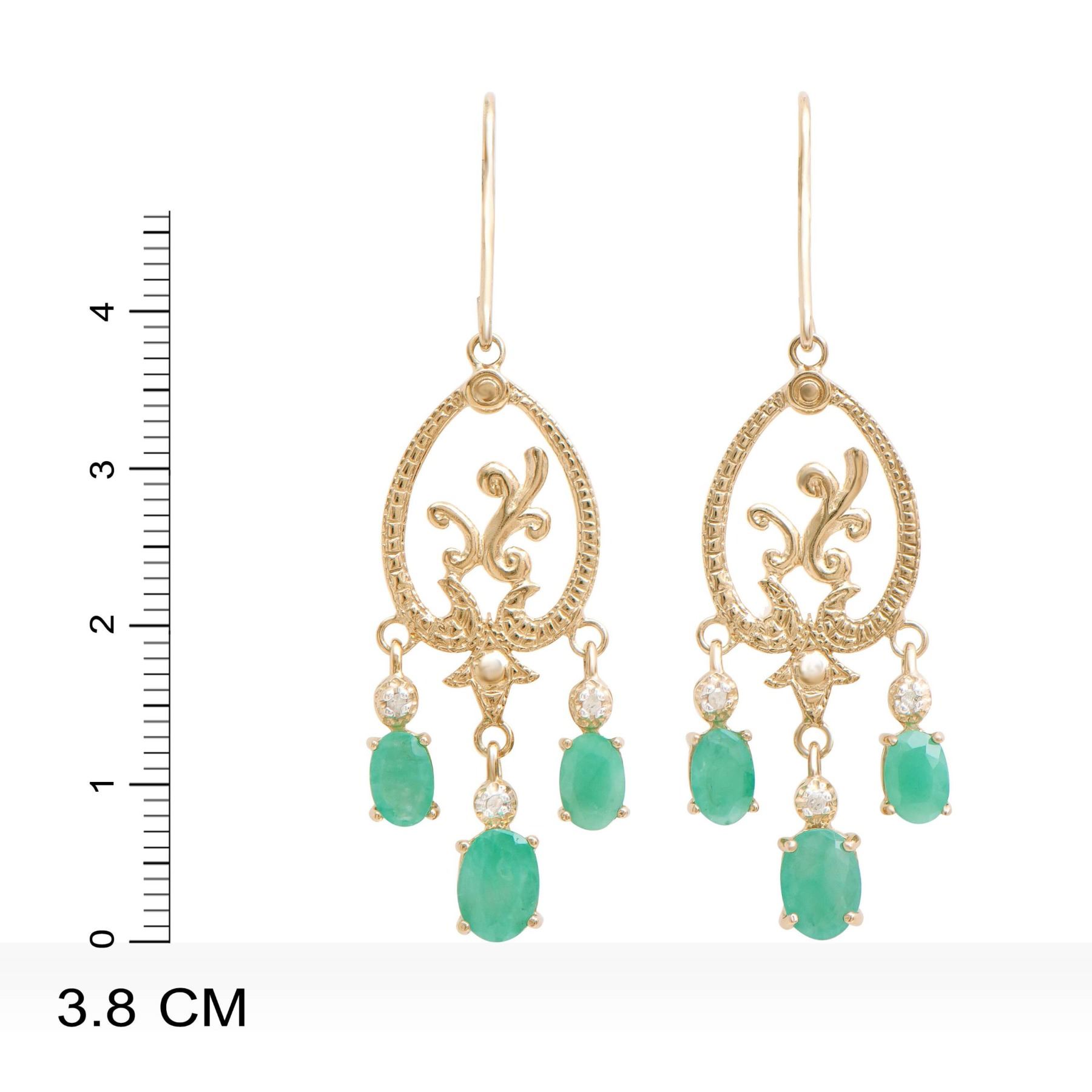 (2) Emeralds with a total weight of 1.55cts. (4) Emeralds with a total weight of 2.05cts.(6) round Diamonds with a total weight of 0.06cts with a color of H-I and clarity of i3. Total weight of these earrings are 5.46 grams.