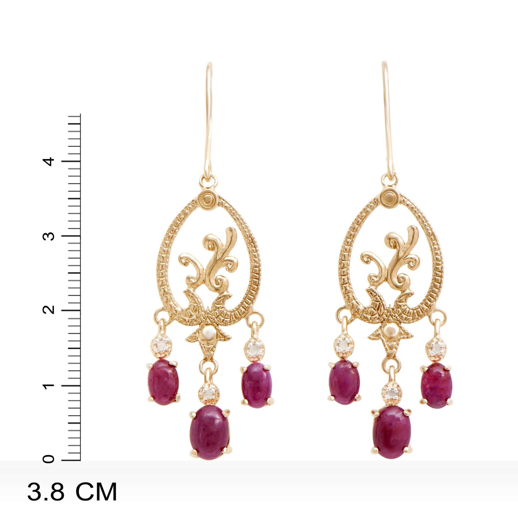 (2) Rubies with a total weight of 2.05cts. (4) Rubies with a total weight of 2.45cts.(6) round Diamonds with a total weight of 0.06cts with a color of H-I and clarity of i3. Total weight of these earrings are 5.54 grams.