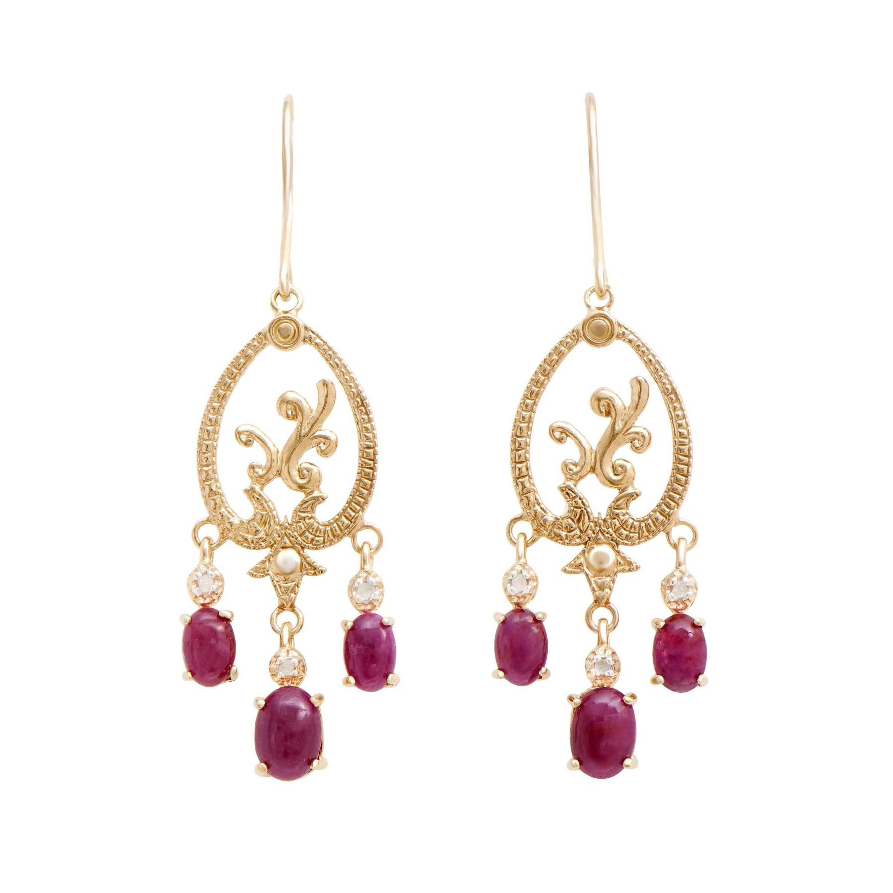 (2) Rubies with a total weight of 2.05cts. (4) Rubies with a total weight of 2.45cts.(6) round Diamonds with a total weight of 0.06cts with a color of H-I and clarity of i3. Total weight of these earrings are 5.54 grams.