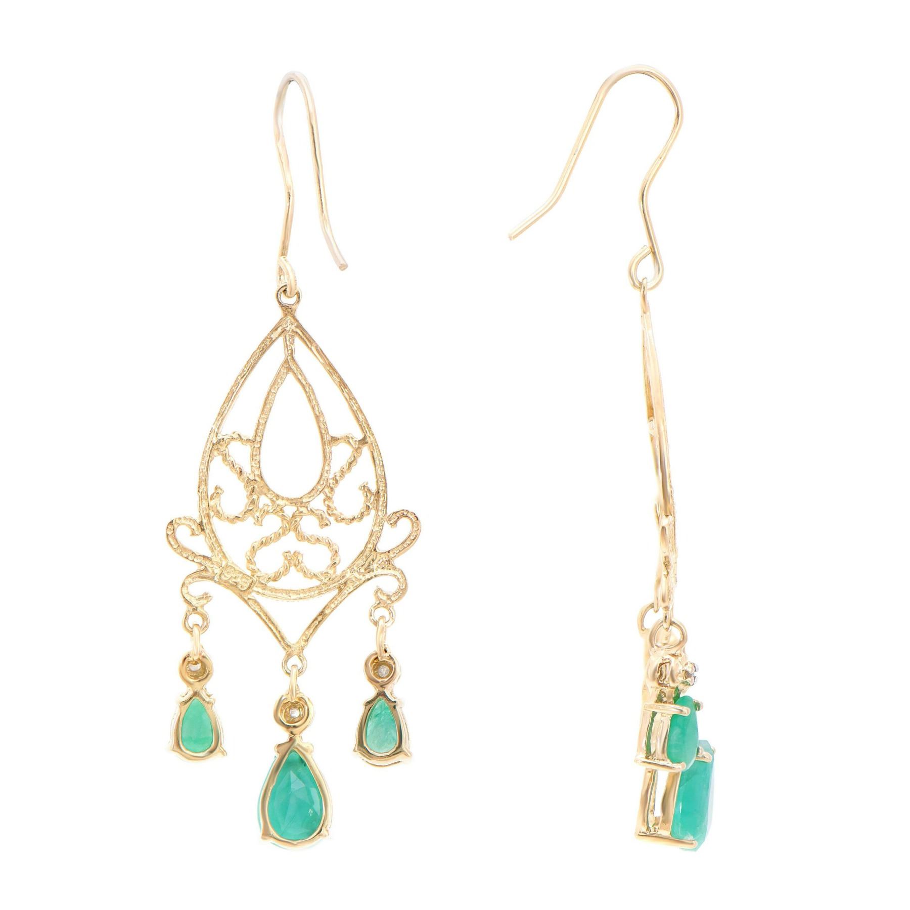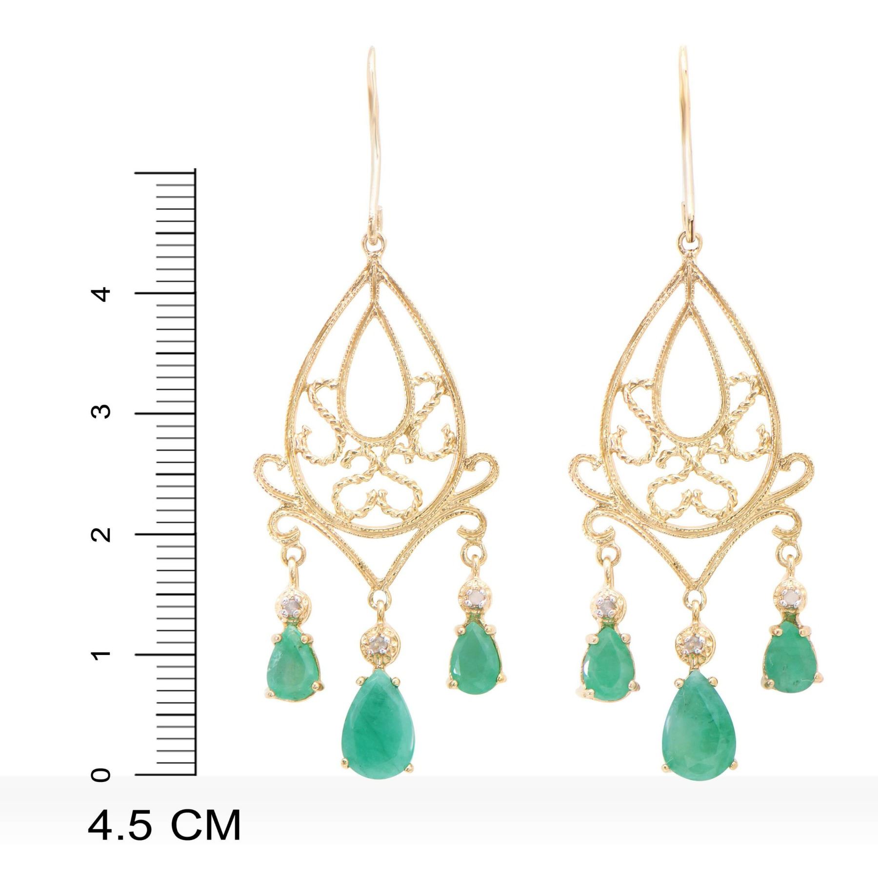 (2) Pear shaped Emeralds with a total weight of 2.75cts. (4) Pear shaped Emeralds with a total weight of 1.76cts. (6) round Diamonds with a total weight of 0.06cts with a color of H-I and clarity of i3. Total weight of these earrings are 5.90 grams.