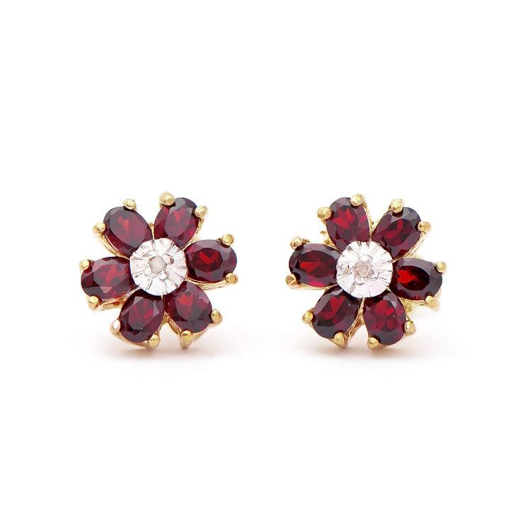 One pair of Plated 18KT Yellow Gold1.92cts Garnets and Diamonds Earrings. (12) Brown Garnet stones with a total weight of 1.9cts. (2) diamonds with a total of 0.02cts with a color of H-I and clarity of I-3. Total weight of these earrings is 3.28 grams.