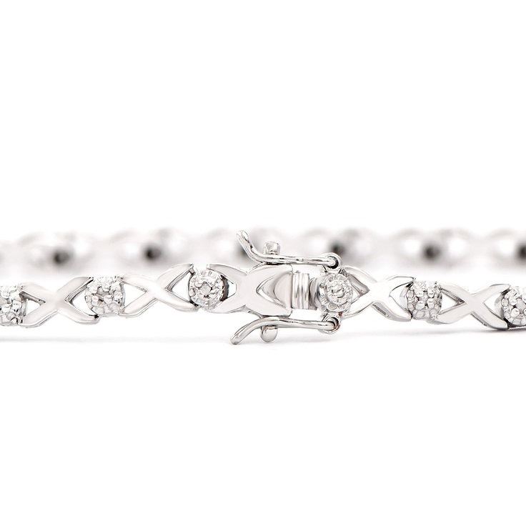 One Plated 0.2cts Diamond Rhodium Bracelet. (23) diamonds with a total of 0.2cts with a color of H-I and clarity of I-3. Total weight of this bracelet is 8.7 grams.